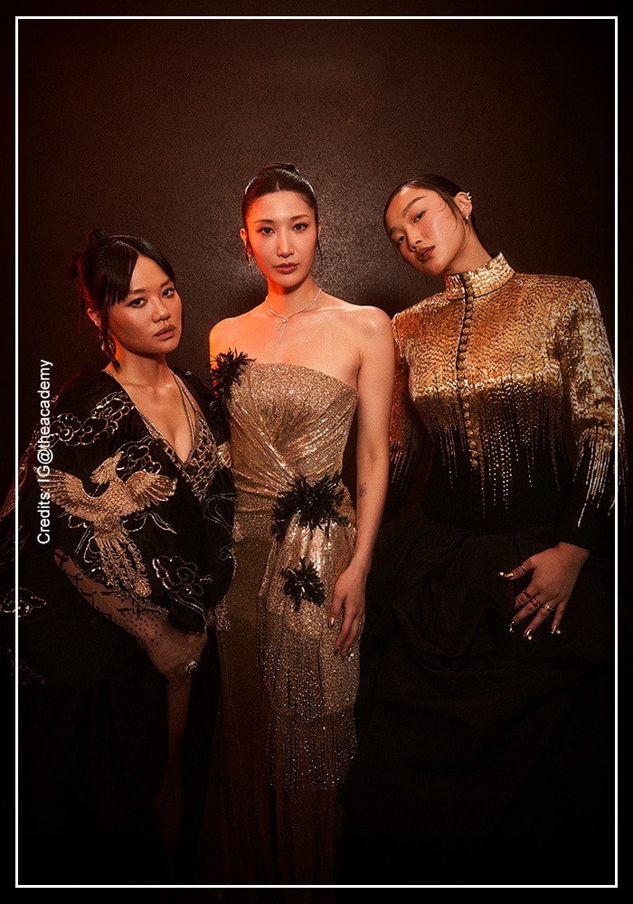 Rei Ami, Ejae and Audrey Nuna were glimmering in gold as they posed together for this unforgettable celebration of acting talent. Their coordinated shimmer captured the spotlight, as three unapologetically bold radiant women posed for a photograph.