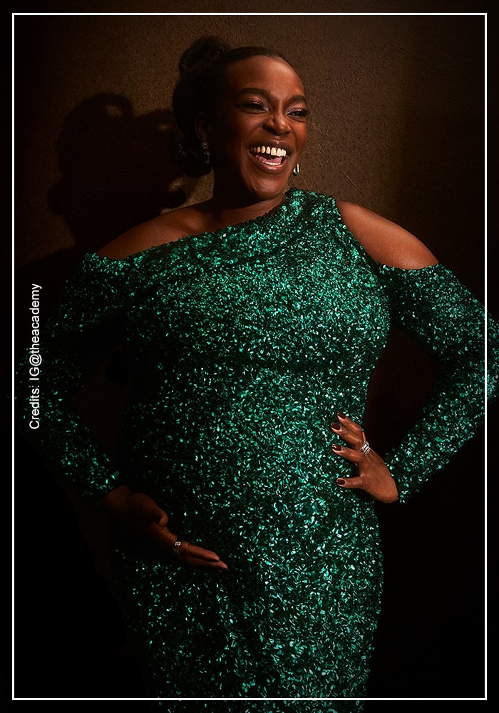 Wunmi Mosaku dazzled in a shimmering green outfit that caught the light with every movement. A rich emerald tone, ornate with sequins, her confidence shone through more than anything else. Mosaku turned her moment into a statement of sophistication. - Mckenna Grace