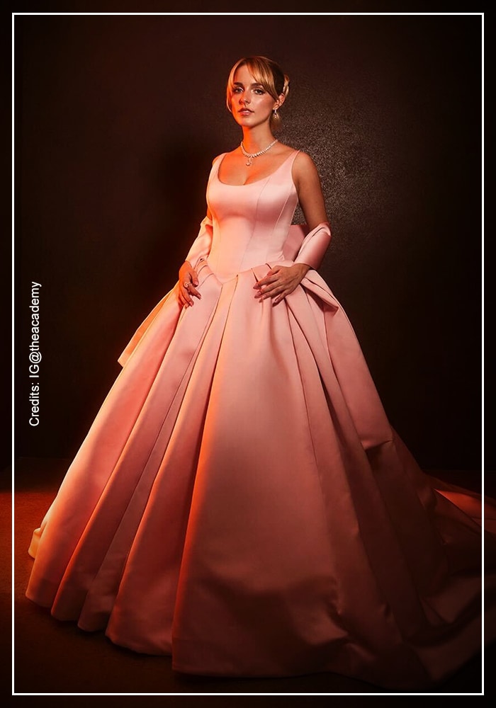 Mckenna Grace looked like a real-life princess in a dreamy pink sleeveless gown. The silhouette was soft, ethereal and flowy at the bottom, bringing its own romantic charm to the night. The evening was transformed into a fairytale quality, matching their youthful charm.