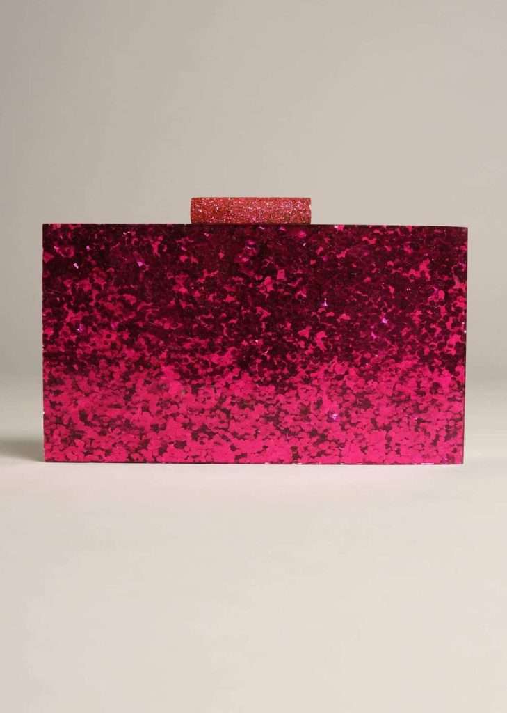 Wish to look classy and modern with your dazzling contemporary bridal outfit? A bright coloured, sleek clutch bag, which is a rage these days, will give you a glamorous and modern look and will keep your essentials safe. The magenta pink box shimmery clutch bag for weddings from KALKI is a masterpiece that will make you look like a diva on your special day.